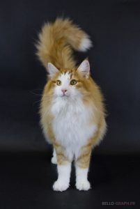 Le Norvégien est toujours prêt à venir faire des câlins, à dormir avec vous, à bavarder (il adore s’exprimer), à vous suivre dans vos déplacements. Il est très tolérant avec les autres chats de la maison ou les chiens. C’est l’ami des enfants.